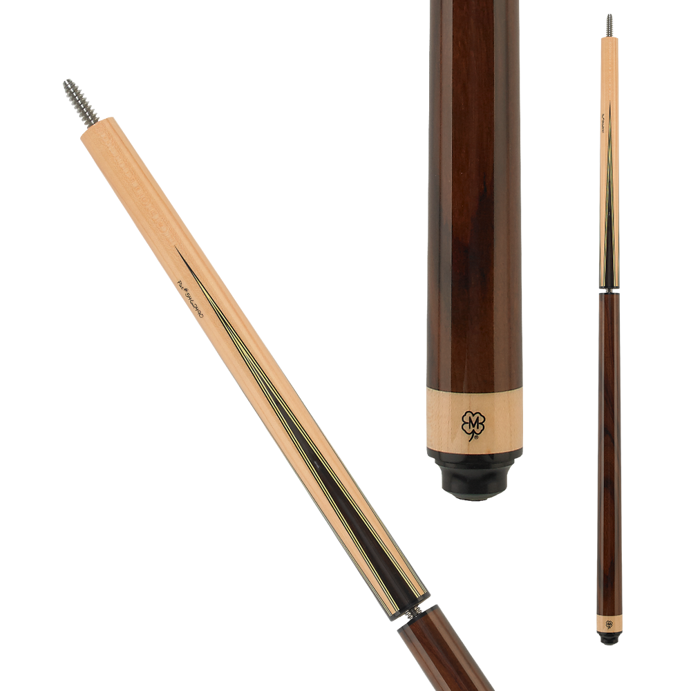 | forearm | Maple with four recon ebony and yellow veneer points, quick-release joint for jump cue |