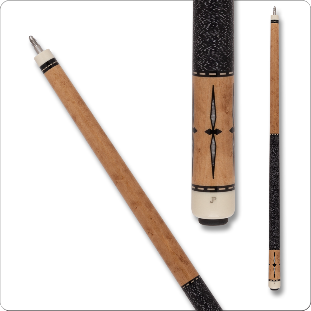 | buttsleeve | Blonde stained maple pearl and black inlays in the shape of a cross |